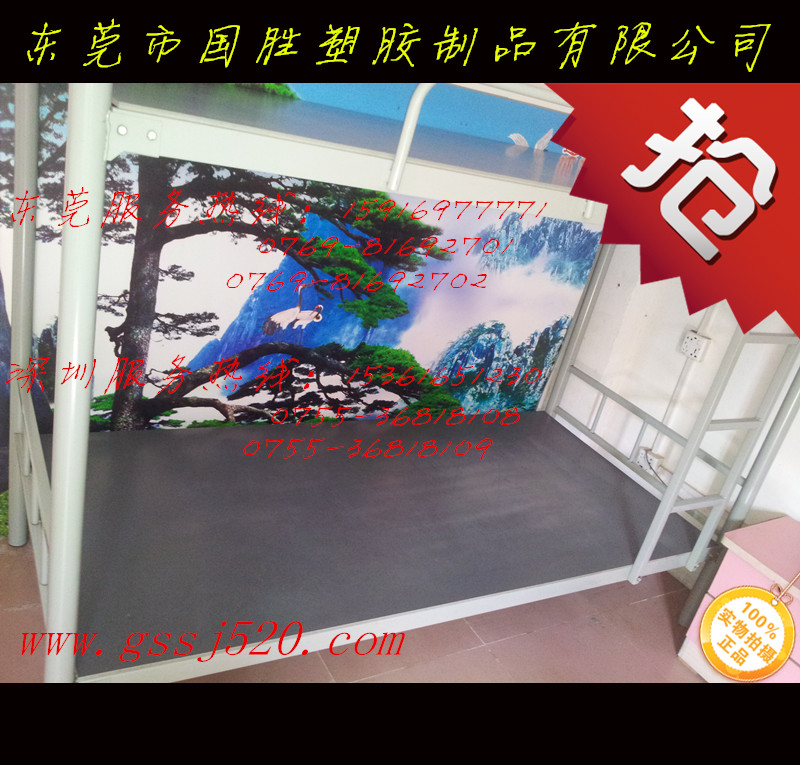 本公司专业供应员工宿舍睡觉用的胶床板、塑胶床板、塑料床板 ;本产品具有良好的稳定性,表面平整光洁卫生,无缝隙无气泡无小孔,臭虫根本没有藏身之处,实心不长虫,耐酸碱防老化,防潮防火防臭虫~蛀虫!耐用长达10年以上。对人体决无伤害、无味,代替易生虫不耐用的木床板。"国胜塑胶制品"珠三角连锁经营配送速度快,可按客户要求的规格量身定做,国胜塑料床板业务网络遍布深圳福田区、罗湖区、南山区、盐田区、宝安区、坪山新区、龙岗区,东莞莞城、南城、东城、万江、石碣、石龙、茶山、石排、企石、横沥、桥头、谢岗、东坑、常平、寮步、大朗、黄江、清溪、塘厦、凤岗、长安、 虎门、厚街、沙田、道滘、洪梅、麻涌、中堂、高埗、樟木头、大岭山、望牛墩等镇区,只要您一个电话,宿舍里的臭虫问题就能够得到充分解决!员工睡眠就能够得到很好提升,上班精神饱满,工作效率提高,珠三角最给力厂家-国胜塑胶公司提供表面光洁卫生规格可定制的床板、胶床板、塑胶床板、塑料床板、铁架床床板、不长虫的床板、不生虫的床板、不长臭虫的床板、不生蛀虫的床板.